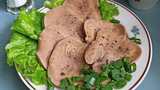 Отварной язык можно посыпать зеленым луком или укропом...