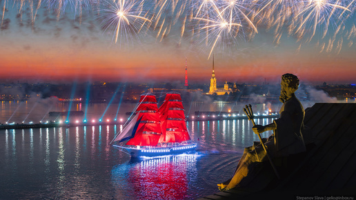 В Санкт-Петербурге ежегодно проводится грандиозный праздник выпускников — одно из самых зрелищных событий в России. Праздник проводится в субботу, ближайшую к пику белых ночей, обычно с 18 по 27 июня (кроме 22 июня). Главный атрибут праздника — парусник с алыми парусами, который проходит по Неве под многочисленные салюты и музыку. Символ взяли из книги Александра Грина «Алые паруса». Парусник олицетворяет надежду, веру в будущее, любовь и волшебство. Впервые праздник выпускников состоялся в Ленинграде...