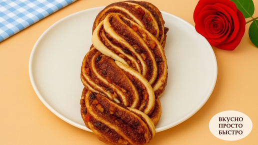 Приветствую вас на канале Вкусно Просто Быстро! Эта плетёнка — самый уютный аромат зимы: нежное сдобное тесто, пряная корица, сладкие сухофрукты и орехи. Традиционная праздничная выпечка, которая создаёт настроение Рождества в вашем доме! Создание опары: 330 мл молока подогрейте до температуры 37-40°C. Добавьте 80 г сахара и 8 г сухих дрожжей (или 25 г свежих). Перемешайте, оставьте на 10-15 минут до появления пенной шапки. Замес: В опару добавьте 40 г желтков (~2 шт.) и 50 г сливочного масла (растопленного и остывшего)...