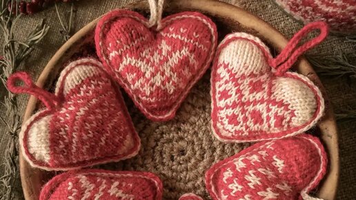 Вязанные сердечки-валентинки: Шарм норвежского орнамента