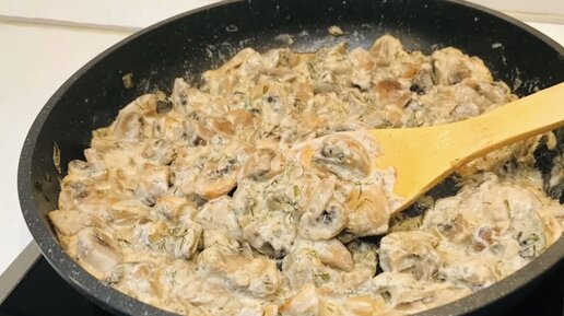 Потрясающе вкусные шампиньоны в сметане. Очень просто и быстро.
