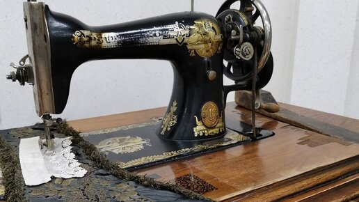 Швейная машинка, представленная в коллекции Копейского краеведческого музея, изготовлена из металла с использованием дерева и чугуна. Она встроена в деревянную столешницу с откидной крышкой. Столешница стоит на чугунной станине, ее боковые стороны ажурные и соединяются между собой перекладиной с литой надписью: «SINGER». На платформе сохранился индивидуальный номер изделия — F-6.206.445. Он говорит о том, что эта модель швейной машинки произведена в шотландском городе Клайдбанк в 1915 году. В нижней части подставки имеется ножной привод в виде решётки...