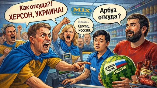Немецкие магазины, как известно, место спокойное: люди стоят в очередях, молчат, платят по карте и расходятся по домам. Но иногда даже эта идиллия трескается. Очередной эпизод европейского абсурда произошёл в Германии, в магазине Mix Markt, специализирующемся на продаже товаров из России и стран постсоветского пространства. Обычный покупатель, русскоязычный житель ФРГ, зашёл туда за арбузом. Ничего не предвещало беды — длинная очередь, касса, молодой кассир азиатской внешности. Но роковой ответ на вопрос всё изменил...