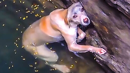 Упавшая в колодец собака несколько часов пыталась держаться на плаву до прибытия спасателей.