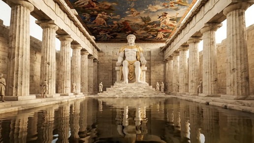 Представьте: вы входите в полумрак храма, и вдруг перед вами возникает фигура высотой с четырёхэтажный дом. Золотая кожа мерцает в свете масляных ламп. Глаза из драгоценных камней следят за каждым вашим движением. Массивная рука, способная раздавить человека, покоится на подлокотнике трона, украшенного сотнями мифологических существ. И вы понимаете — перед вами не статуя. Перед вами сам Зевс, царь богов, спустившийся с Олимпа. Так чувствовали себя древние греки, впервые видевшие статую Зевса Олимпийского — третье чудо древнего мира...