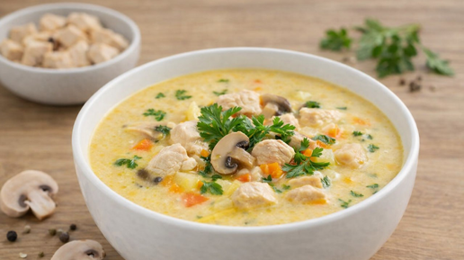 Здравствуйте, мои хорошие! Есть такие супы, которые будто созданы для спокойных вечеров. Когда за окном сыро или просто устали за день, а дома хочется тишины, тепла и чтобы на кухне тихо побулькивало что-то очень домашнее. Куриный суп с плавленым сыром как раз из этой компании. Он нежный, сливочный, сытный, но при этом лёгкий. Готовится без суеты, из самых простых продуктов, а на вкус — будто старались гораздо дольше, чем на самом деле. Я часто варю такой суп, когда не хочется ничего сложного. Куриная...