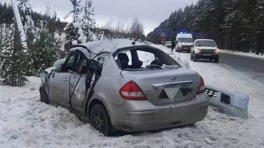 «Синий» водитель на Приоре улетел в кювет на трассе Красноярск-Канск и при этом остался без единой царапины!