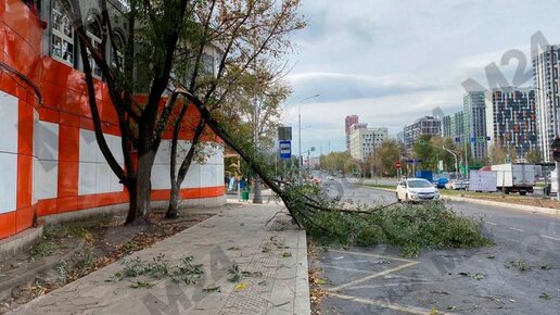 Ураганный ветер в Москве валит деревья и срывает крыши с беседок