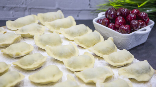 Вареники с вишней. Тонкое, нежное тесто не рвётся и удерживает сочную начинку внутри.
