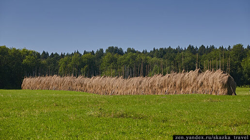 Стог сена часто представляют маленькой копной, но на севере России в глухих деревнях все по-другому. Длинный и высокий стог – это норма. Однажды мы нашли очень-очень длинный.