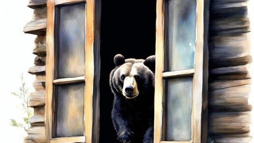 И вдруг голова медведя пробивает это окно и полностью влезает в комнатку (голова). Тут я просыпаюсь в диком ужасе, вспотевшая от страха..