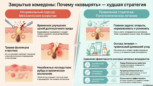 Частое заблуждение косметологов: ковырять закрытые комедоны