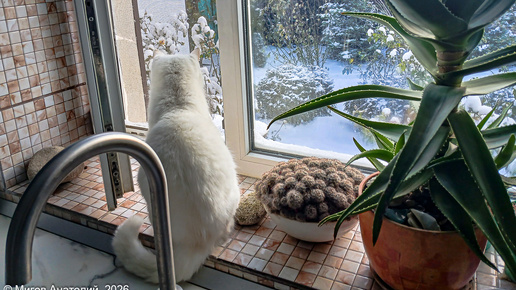 Кошка Маруся сидит на подоконнике, смотрит на улицу, а выйти не решается. Холодно в Старом Крыму. В 9 утра было -10, для теплого Крыма это перебор. За десять лет крымской жизни я совсем отвык от морозов. Для меня сейчас ниже минус пяти - это уже холодно. А нам такую погодку обещают на ближайшие десять дней. Вот-вот придет Крещение, кто-то будет окунаться в море. Бррр, как представлю, самого пробирает. Ближайшие от нас организованные крещенские купания проходят в Феодосии и Орджоникидзе. Мы с Леной ездили туда пару раз...