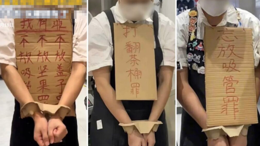 Пусть бумажные, но все еще наручники. Разве это не прямое унижение человеческого достоинства, что сотрудники преступники или хуже того – рабы? Крупный Чайный магазин Good Me (а чайные магазины в Китае куда популярнее и востребованней, чем у нас. У этой сети, например, 9 000 точек по всей стране!) опубликовал от лица компании якобы «смешные» ролики со своими сотрудниками, закованными в бумажные наручники из картонных держателей для чашек. На шее у них были карточные таблички, где были написаны их преступления...