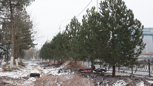 Первые 12 шестиметровых сосен высадили в Новочеркасске в сквере на проспекте Платовском. Губернатор Ростовской области Юрий Слюсарь приехал в Новочеркасск, чтобы на месте проверить, как выполняется его поручение о восстановительных высадках взамен спиленных в октябре хвойных деревьев. Министр ЖКХ Ростовской области Антонина Пшеничная доложила, что на внебюджетные средства уже закуплено 29 шестиметровых сосен для высадки в центре города. Из них 12 высажено. Остальные планируется высадить в наступающем году - после завершения на этом участке работ по переносу подземных инженерных коммуникаций...