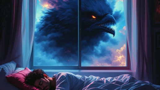 Мне приснилось, что я находился в квартире с семьёй. Посмотрев в окно, увидел, как надвигается вытянутая черная туча, напоминающая голову хищной птицы. Когда туча приблизилась к углу дома, из клюва выходил пар, словно это была живая птица. Мне стало жутковато, но я решил снять это на телефон и показать супруге, которая кормила новорожденную дочку в соседней комнате, где были и два моих сына. Пока жена смотрела видео, я снова посмотрел в окно и увидел, как раскаленные куски летят навстречу дому, оставляя темные дымящиеся следы...