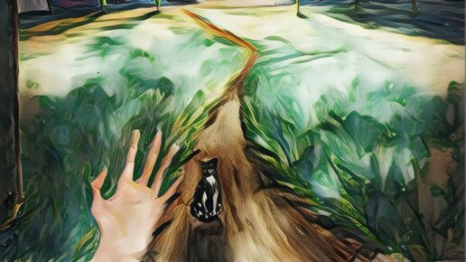 Перед сном поставил себе задачу проверить одно место, в котором я в обычном сновидении видел огромную яму. Я хотел проверить, на месте ли она. В реальности это место находится недалеко от дома, а поскольку оно мне хорошо знакомо, то я решил что и в сновидении мне не составит труда туда попасть. Осознался у себя дома. Подошёл к окну на кухне, и на всякий случай сделал проверку сновидения, проведя руку сквозь стеклопакет. Убедившись, что это сон я прошёл сквозь окно. Периферией зрения заметил за спиной силуэт, но не стал уделять ему внимания...
