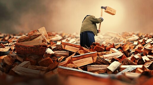 Бабушке Нине приснился сон, будто колет она дрова на своём дворе. Старая уже там во сне, как сейчас, но, замахиваясь высоко топором, лихо колет. Только щепки летят. Вот ставит чурку и "хрясь" – она пополам, потом ещё раз "хрясь" – и на четвертины. Каждую зазубринку во сне видит. Уже завален весь их двор поленьями, уже не видно клумбы с цветами, уже привалены колёса машины зятя, и дом снизу тоже весь уже чуть ли не до окон завален поленом, а она всё колет и колет. Во сне устала шибко, но остановиться не может...