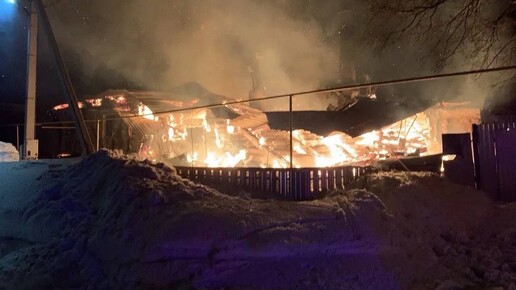 К моменту прибытия первого подразделения 121-й пожарно-спасательной части через четыре минуты огонь уже охватил всю кровлю двухквартирного дома. Из-за сильного ветра (порывы до 10 м/с) пламя быстро распространялось по деревянным конструкциям здания 1998 года постройки. До приезда пожарных хозяева самостоятельно эвакуировались...