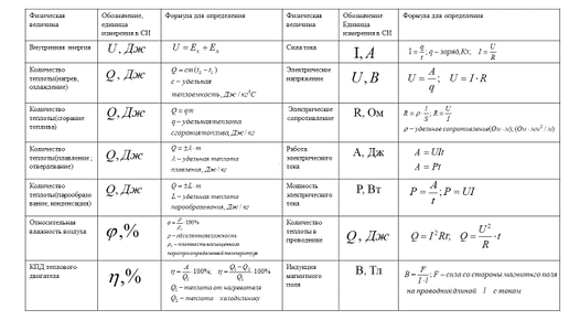 Физика между нами!1 год назадПодписатьсяПамятка по основным физическим величинам и формулам для их определения в курсе физики 8 класса