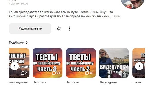 Сейчас на канале "Английский с Натали" появились новые возможности. Можно видеть не только свежие публикации, но "поднять" все ценное, что было ранее, благодаря рубрикатору. Итак, нажимаете название канала Английский с Натали, и оказываетесь на его главной странице. Ниже заголовка видите рубрики-подборки. Видеоуроки Здесь собраны все видеоуроки, которые есть на канале, от самого простого - к сложному. Ожидается пополнение в этой рубрике в ближайшем будущем. Тесты Тесты собраны в три раздела, так как позволяется только по 30 публикаций в одной подборке...