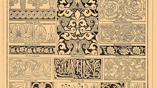 Арабески (фр. arabesque; исп. arabesco - арабский) - это сложный чаще всего симметричный по композиции орнамент, состоящий из стилизованных растительных мотивов или комбинации различных геометрических фигур, иногда включает также надписи арабским шрифтом. Арабески - равномерно распределенное, слитное и сросшееся своими частями украшение поверхности, расположенное по законам геометрического ритма и выполнявшееся первоначально пластическим путем. Арабески получили распространение в европейском искусстве в эпоху Возрождения и позднее главным образом под влиянием мусульманских образцов...