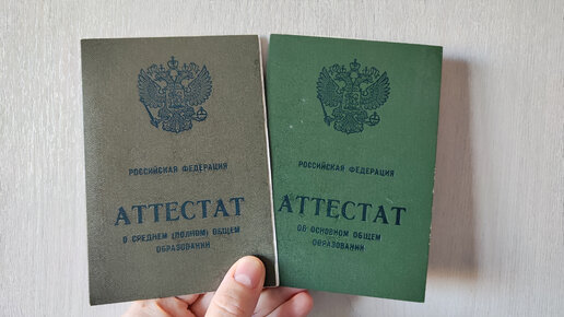 Нашёл свои аттестаты об основном и среднем образовании, показываю итоговые оценки