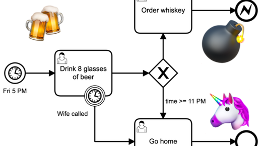 Оригинал статьи на английском языке размещен тут: Routing Events to Processes Стартовые события. Для запуска нового процесса может быть использовано несколько стартовых BPMN. Рассмотрим случаи использования различных стартовых событий: Рассмотрим следующий процесс в качестве примера: Промежуточные события...