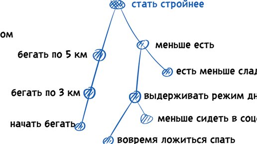 Цели можно разделить на конечные и промежуточные. Конечная цель важна сама по себе, промежуточная служит для достижения какой-то другой цели. Например, вам «найти новую работу» нужно для того, чтобы «зарабатывать более 100 тысяч рублей в месяц», а «зарабатывать более 100 тысяч рублей в месяц» нужно для того, чтобы, в первую очередь, «купить себе квартиру». «Купить квартиру» же нужно для уверенности в себе и спокойствия, то есть только для удовлетворения ценностей, а не для достижения более важной цели...