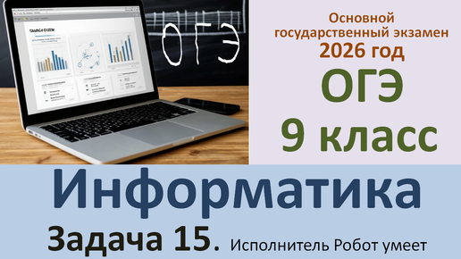 Рассмотрим решение задачи номер 15 ОГЭ по информатике (на примере демо-варианта 2026 года). Исполнитель Робот умеет перемещаться по лабиринту, начерченному на плоскости, разбитой на клетки. Между соседними (по сторонам) клетками может стоять стена, через которую Робот пройти не может. У Робота есть девять команд. Четыре команды – это команды-приказы: вверх вниз влево вправо При выполнении любой из этих команд Робот перемещается на одну клетку соответственно: вверх ↑, вниз ↓, влево ←, вправо →...