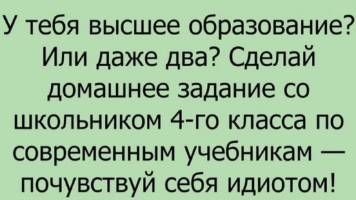 *** — Вы выходите на этой остановке? — Нет, не выхожу. — Зря, это отличная остановка! *** Робин Гуд терял способность к действию, когда сталкивался с людьми, обладающими средним достатком. *** В Третьяковской галерее от посетителей часто можно услышать: «О, это же она!» *** Кто из нас не мечтает хотя бы раз в жизни выдернуть шнур и выдавить стекло! *** Пожалуйста попытайтесь описать себя в трех словах. - Ленивый. *** Селекционер, никому ничего не объясняя, ускакал на тыкве. *** И воскликнул богатырь:...