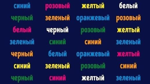 Слова разного цвета с другими написанными словами В этом упражнении будем одновременно использовать логику и творческие способности. Слова разного цвета с другими написанными значениями Вводим в поиск в интернете фразу - Слова разного цвета с другими написанными значениями. Вот ссылка на поиск Яндекса по картинкам. https://yandex.ru/images/ Берем любую картинку из найденного. Задача заключается в том, чтобы быстро, не раздумывая, назвать цвет, в который окрашено слово. Может показаться, что...