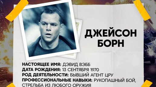 Идея написать шпионский роман пришла Роберту Ландлэму ещё в 70-х годах. Однако первая книга про неуловимого агента Джейсона Борна появилась лишь в 1980-ом и сразу же завоевала популярность, благодаря негласному противопоставлению американского героя британскому Джеймсу Бонду. За «Идентификацией Борна» последовали ещё четырнадцать книг, компьютерная игра, мини-сериал и пять экранизаций. Давай узнаем, кто же такой Джейсон Борн! В отличие от главных персонажей других боевиков, первое появление Джейсона...
