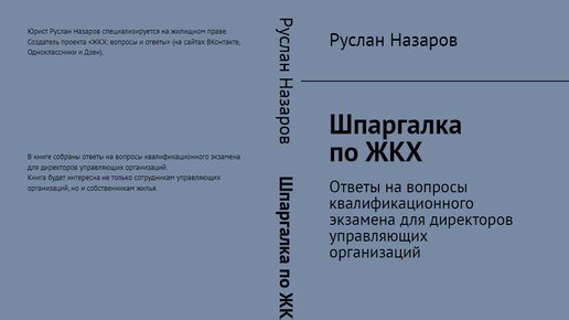 Новая книга по ЖКХ! 200 свежих вопросов за 2024 год Рады представить нашу новую книгу «Шпаргалка по ЖКХ»! В книге собраны ответы на вопросы квалификационного экзамена для директоров управляющих организаций. https://ridero.ru/books/shpargalka_po_zhkkh_1/ Управляющие компании в сфере ЖКХ не могут работать без лицензии. Одно из требований для получения лицензии – сдача директором квалификационного экзамена. В 2015 году приказом Министерства строительства и жилищно-коммунального хозяйства РФ от 5 декабря 2014 г...