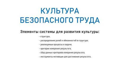 КУЛЬТУРА БЕЗОПАСНОГО ТРУДА. Элементы системы.