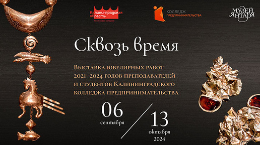 6 сентября в Музее янтаря откроется ежегодная выставка ювелирных работ преподавателей и студентов Калининградского колледжа предпринимательства «Сквозь время» Это единственное учебное заведение на территории Российской Прибалтики, занимающееся подготовкой художников-ювелиров. Выставка продемонстрирует широкой публике результаты обучения и кропотливого труда педагогов и учащихся – созданные ими уникальные изделия. Начинающие мастера зачастую берут за основу элементы классического ювелирного искусства, переосмысливают и стремятся попасть в современные тренды...