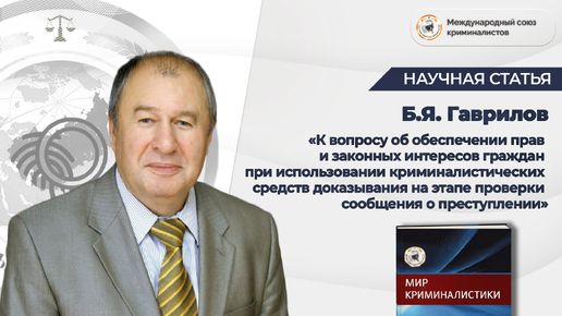 Статья профессора кафедры управления органами расследования преступлений Академии управления МВД России, доктора юридических наук, профессора, заслуженного деятеля науки России, заслуженного юриста России, генерал-майора юстиции (в отставке) Бориса Яковлевича Гаврилова «К вопросу об обеспечении прав и законных интересов граждан...
