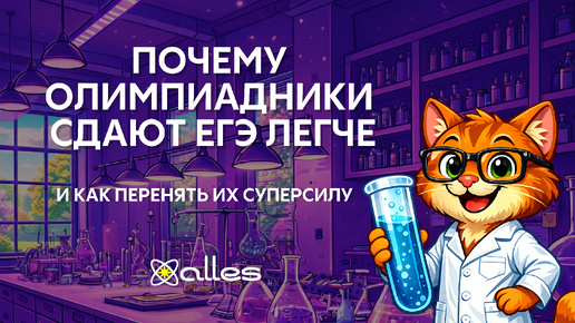 Привет, друзья! 👋 С вами снова, команда онлайн-школы Alles Вы когда-нибудь замечали эту закономерность? Ребята, которые участвуют в олимпиадах по химии, приходят на ЕГЭ… и набирают 90, 95, 100 баллов — для них это не предел мечтаний, а просто нормальный результат. В то же время отличник, который все 11 лет учился на пятерки, но не вылезал из школьной программы, часто спотыкается на номерах 34, 33 или теряет баллы на невнимательности. В чем секрет? Неужели олимпиадников учат чему-то особенному, что не дают в обычной школе? Спойлер: да, учат...
