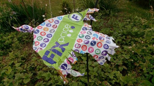 Летающее пугало из пакета и палок сделала за 10 минут. И теперь птицы облетают стороной нашу клубнику и вишню