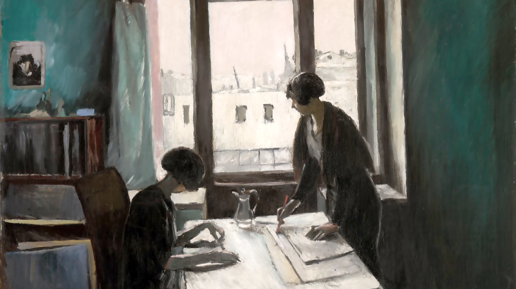 Прямые линии интерьера, сходящиеся под прямыми углами. Немного (по вкусу автора) фовизма, но с сохранением мягкой градации света и цвета. Избран псевдослучайный момент, как на картинах старых голландцев. Ракурс опять же бесхитростный, но для замысла мастера — единственно верный... «Однако, к чему это всë?», — спросит иной эксперт. Почему не пойти по пути, проторённому многими До? Зачем признаваться в любви героине картины вот так, через тернии к символам, болезненно-робко? Через слияние жеста с пространством,...