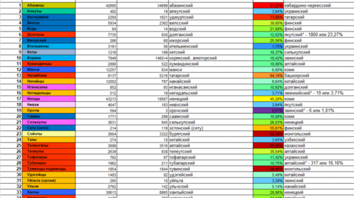 Языковая статистика России, часть 3: национальный язык коренных малых народов