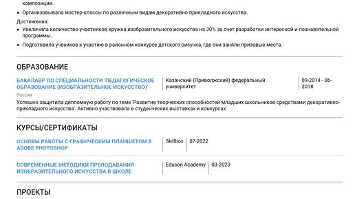 Пример резюме учителя изобразительного искусства 2025 - готовые примеры