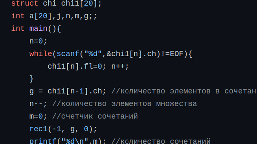 Рекурсия в программировании (язык C). Статья 7 (генерация сочетаний)