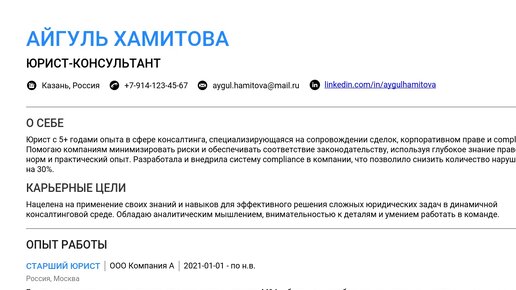 Пример резюме юриста в консалтинговую компанию 2025 - Советы