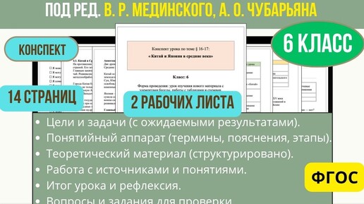 Конспект “Китай и Япония в Средние века”, история 6 класс, учебник Мединский, Чубарьян, §16–17 — это готовая методическая разработка для учителя, полностью соответствующая требованиям ФГОС.