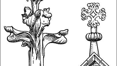 Крестоцвет (флерон) — декоративное навершие в архитектуре готического стиля. Имеет вид стилизованного цветка или бутона с одной или двумя парами горизонтальных крестообразных ответвлений от центрального стебля. Термин «флерон» иногда употребляют синонимично понятию «крестоцвет», но это терминологическая ошибка — рёбра фиала украшены другими элементами (краббами), и только верхняя остроконечная точка — крестоцветом. Строго говоря, термин «крестоцвет» точно определяет лишь одну, наиболее распространённую, форму этого декоративного элемента...
