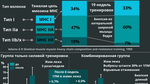 Под воздействием тренировок с отягощением помимо самого роста мышечного волокна также происходит изменение типа волокон в той или иной степени.