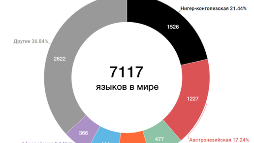 На сегодняшний день на планете насчитывается 142 языковые семьи и 7117 живых языков. Сюда входят как языки-гиганты, являющиеся родными для сотен миллионов человек, так и совсем крошечные, насчитывающие менее 100 носителей. В действительности, большая часть существующих языков это как раз малые, с числом говорящих до нескольких тысяч человек. Наиболее крупные языковые семьи Всего на 4 языковые семьи приходится более половины всех мировых языков. Экваториальный пояс планеты является местом наивысшей языковой концентрации...
