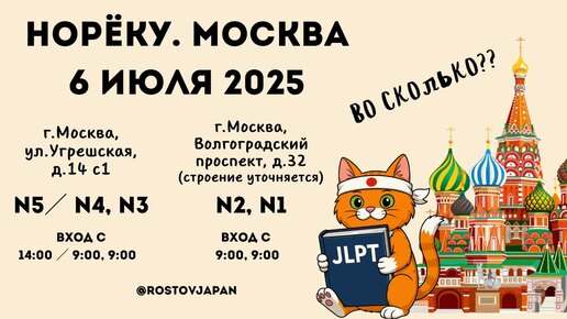 🌟Опубликовано расписание экзамена в Москве: N5 г.Москва, ул.Угрешская, д.14c1 Вход с 14:00 Начало экзамена в 15:00 Окончание экзамена в 17:15 N4 г.Москва, ул.Угрешская, д.14c1 Вход с 9:00 Начало экзамена в 10:00 Окончание экзамена в 12:55 N3 г.Москва, ул.Угрешская, д.14c1 Вход с 9:00 Начало экзамена в 10:00 Окончание экзамена в 13:00 N2 г.Москва, Волгоградский проспект, д.32 (строение уточняется) Вход с 9:00 Начало экзамена в 10:00 Окончание экзамена в 13:15 N1 г.Москва, Волгоградский проспект, д...
