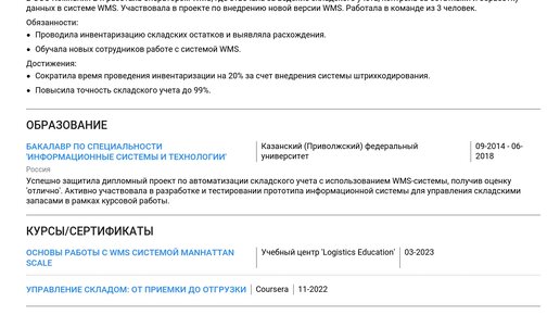 Изучение готового примера резюме оператора WMS — первый шаг к созданию эффективной самопрезентации. Такой подход гарантированно поможет вам составить резюме, которое выделит вас среди других кандидатов и приведет к успешному трудоустройству. ✨ Здесь вы найдете готовые примеры резюме оператора WMS как для начинающих, так и для опытных специалистов. Мы предлагаем пошаговые инструкции, как правильно оформить каждый раздел, включая: Учитывая актуальные требования работодателей, вы научитесь адаптировать свое резюме под конкретные вакансии...